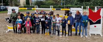 Tag zwei lief für unsere Bambini-Mannschaft bestehend aus Phil und Bella Harting, Lara Dümpelmann, Tim Gierling, Paula und Carolina Barten sowie Mara Wickhorst ebenfalls hervorragend. Sie mussten an dem Tag noch die Führzügelklasse absolvieren. Die Aufregung war hier natürlich groß. Am Ende des Wettbewerbs blieb der RFV Eversael durch super Noten in der Führzügelklasse mit großem Abstand auf Platz eins und konnte damit den Wanderpokal vom letzten Jahr gegen die anderen Vereine verteidigen. Erwähnenswert ist darüber hinaus, dass alle 7 Mannschaftsmitglieder den Wettbewerb in der Einzelwertung unter den Top 10 abschließen konnten. Allen voran siegte hier Phil Harting durch seinen Sieg der Teilwettbewerbe Laufen und Schwimmen, für die er eine besondere Auszeichnung erhielt. Dahinter rangierten direkt Teamkameradin Mara Wickhorst auf Platz zwei und Paula Barten auf Platz 3.