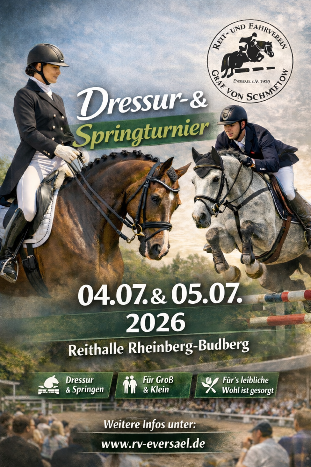 Für uns war es eine erfolgreiche und sehr schöne Veranstaltung. Gut – das Wetter hätte teilweise etwas schöner sein können. Insgesamt aber sind wir sehr stolz auf unsere Nachwuchsreiter und ihre tollen Siege und Platzierungen und auch darauf, dass zwei unserer Reiterinnen für ihren vorbildlichen Umgang mit ihren Pferden ausgewählt wurden. Das zeigt, dass die Ausbilder innerhalb des Vereins mit den Kids auf einem guten Weg sind. Besonders schön anzusehen war die Führzügelklasse. Wer in diese leuchtenden Kinderaugen schaut, weiß, wofür sich die Arbeit ein solches Turnier auf die Beine zu stellen, lohnt. Diese Kinder – und natürlich auch die übrigen Teilnehmer – sind unsere Zukunft und sollen einfach nur viel Freude mit ihren Pferden haben. Hierum haben wir uns mit dem gesamten Eversaeler Team bemüht. Daher haben wir uns auch sehr über die vielen Reiterinnen und Reiter als auch Zuschauerinnen und Zuschauer gefreut. Kommt nächstes Jahr gerne wieder.